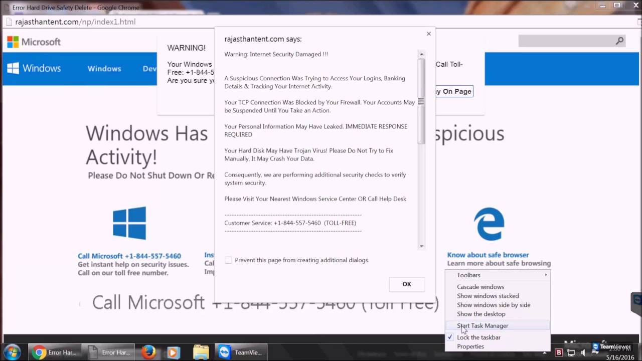 The good news. The pop up notice is just that. A notice to call a number. Don’t call the number. The whole point is to get you to call, you then either give them a credit card number or grant them remote access to your computer. If you don’t call, they get nothing. Chances are nothing has been installed on your computer. Close your browser. The notice should go away. It is possible that it will pop back. Clear the notice from your web history.